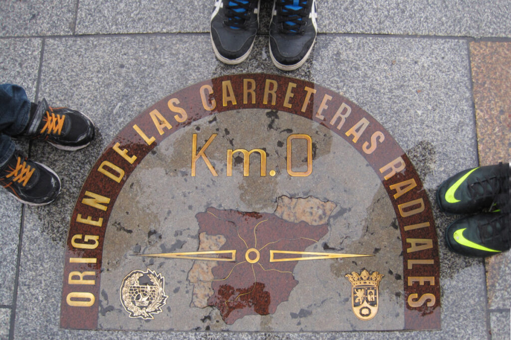 Antes de comenzar a caminar en Madrid, no olvides pasarte por el Kilómetro Cero situado en la Puerta del Sol. La que es una de nuestras plazas más famosas y concurridas está en obras, pero merece la pena que te acerques pues esta será tu salida simbólica. Mira hacia el suelo y busca la placa que indica el comienzo de las carreteras radiales de España o, lo que es lo mismo, los antiguos caminos de postas. Te damos una pista: está justo delante de la Casa de Correos. Fue colocada a mediados del siglo XX y está hecha en granito y latón.